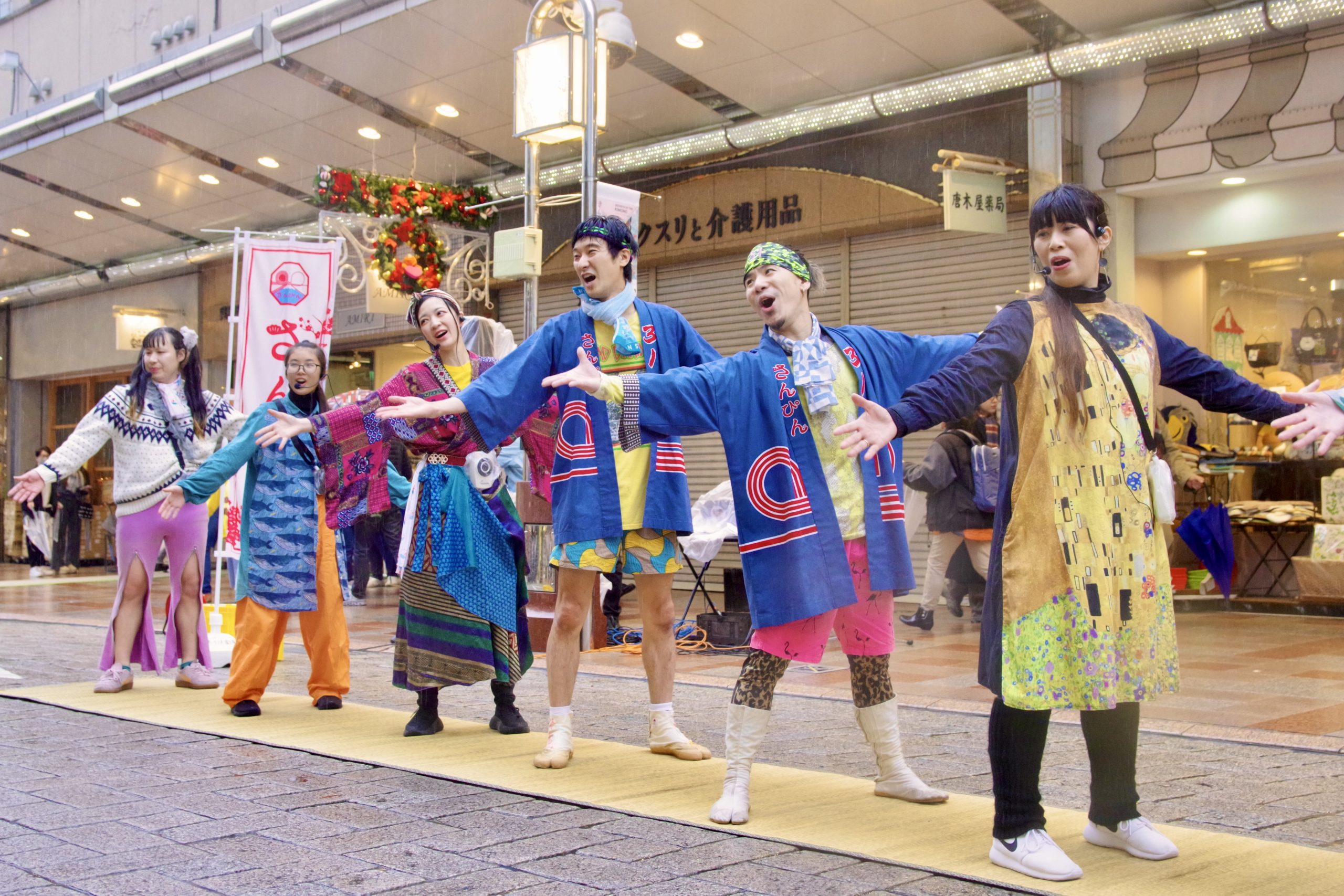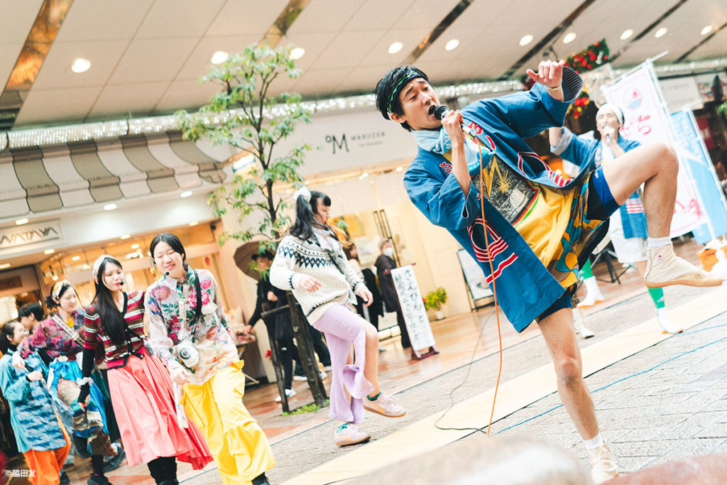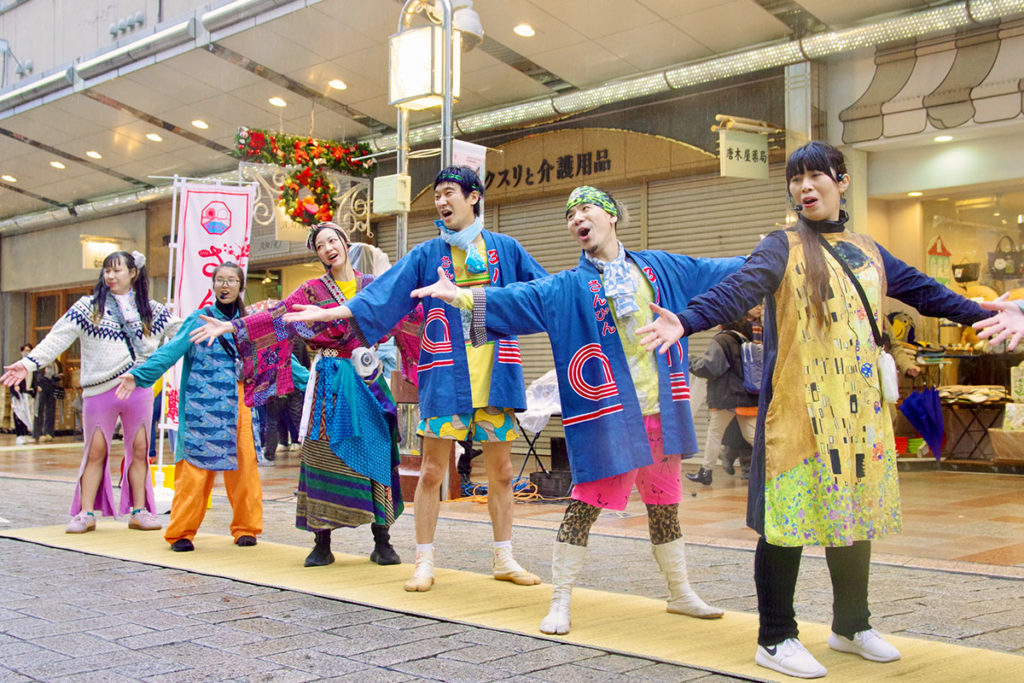 今回、圧倒的な祝祭感や実験性で独自の無国籍音楽を展開する「ジンタらムータ」と共にチンドン楽団を結成し、呉服町名店街を練り歩きながら街や人の物語を紡ぎます。