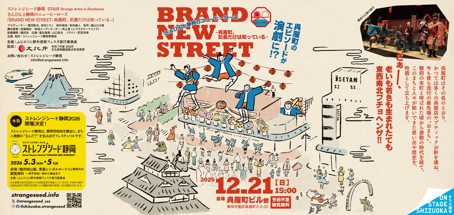 第1弾は、さんぴんと静岡のニューヒーローズ『BRAND NEW STREET -呉服町、石畳だけは知っている-』。日本の静岡から新しい作品が生まれる、その最初の瞬間にお立ち会いください。